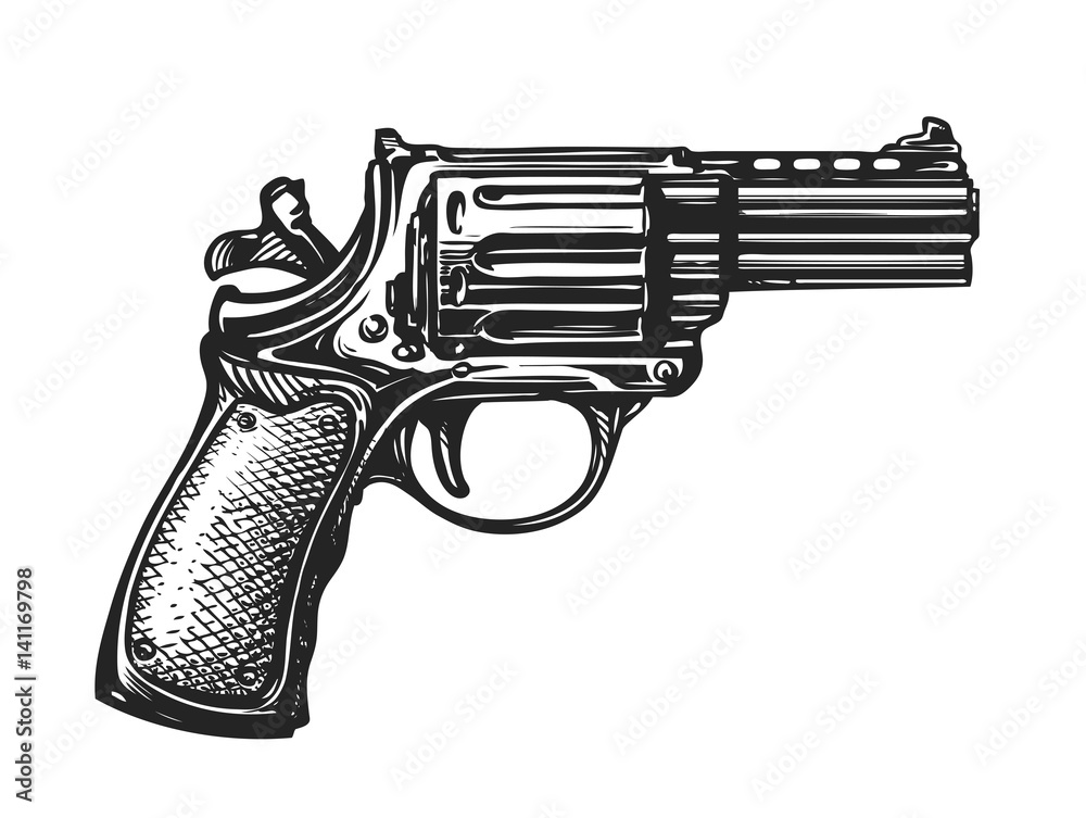 Hand Drawn Revolver Gun Firearm Pistol Sketch Vintage Vector Illustration Wall Mural Bitter